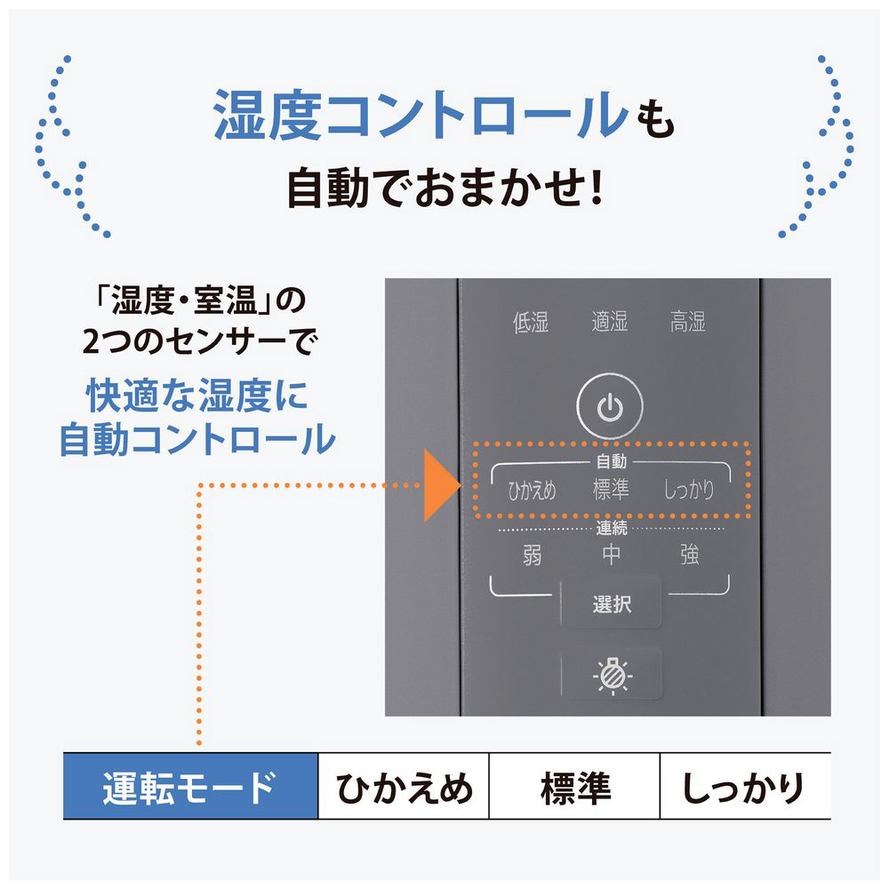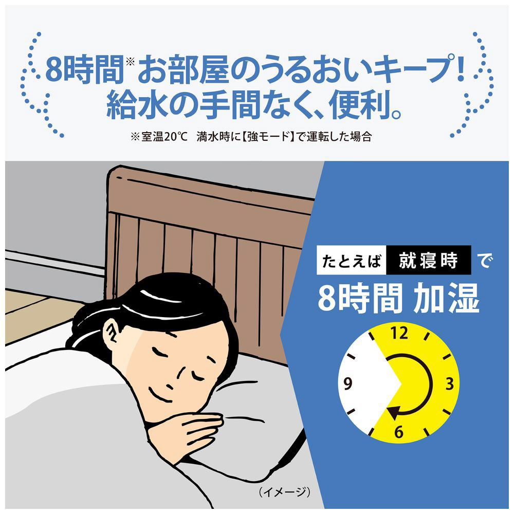 就寝時に便利な長時間加湿にも対応した清潔な蒸気のスチーム式加湿器。