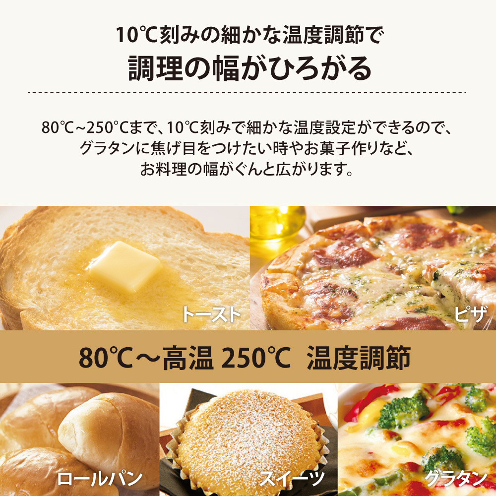 多彩な自動コースと温度調節機能で、様々なパンや料理を美味しく焼き上げるオーブントースター。