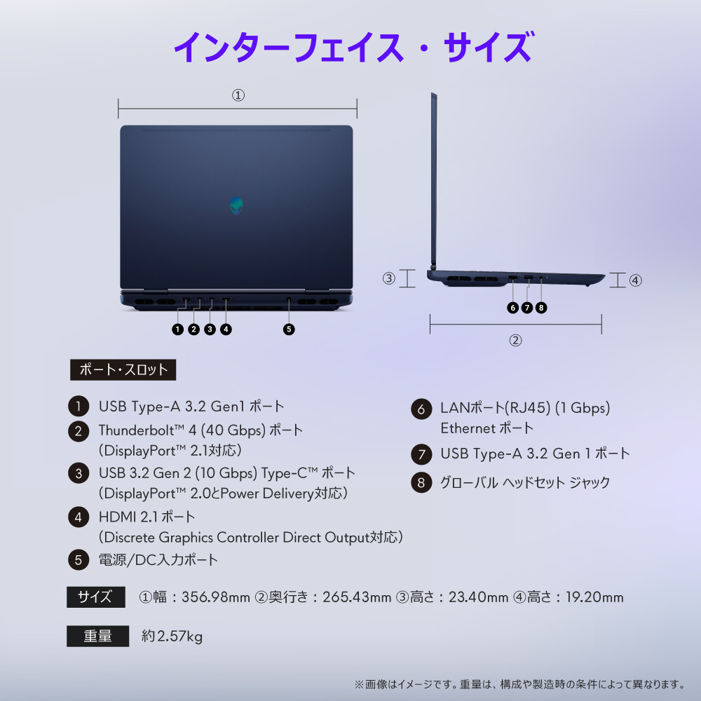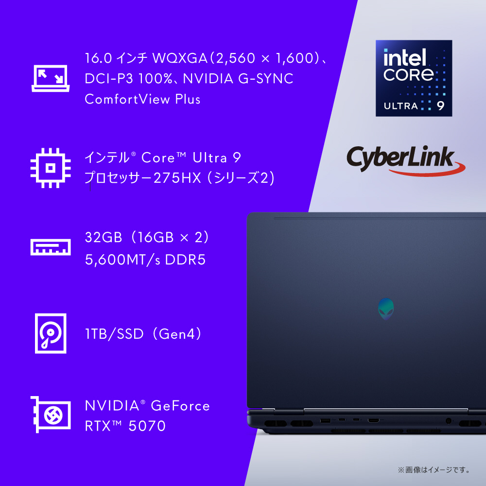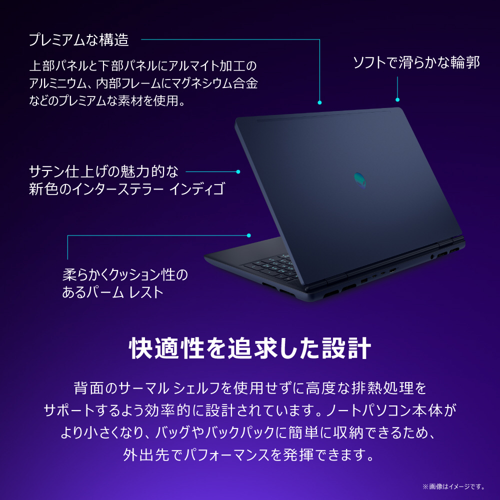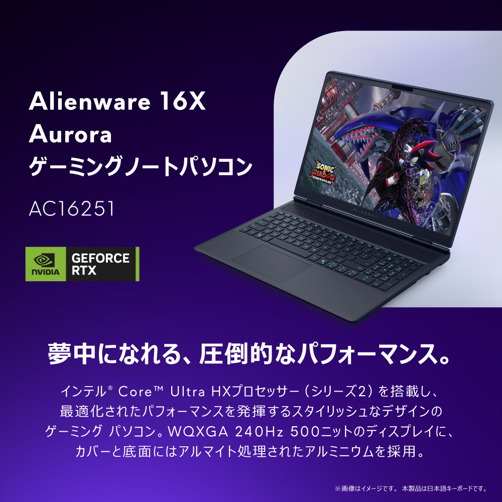 ゲーミングノートパソコン Alienware 16X Aurora(RTX 5070) インターステラー インディゴ NAA86-FNHBC [16.0型 /Windows11 Home /intel Core Ultra 9 /メモリ:32GB /SSD:1TB /Office Home and Business /2025年夏モデル]