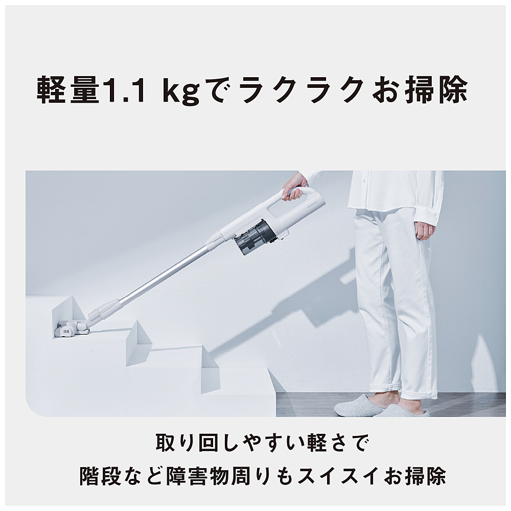 本体質量1.1kg(スティック時)で驚くほど軽いかけ心地