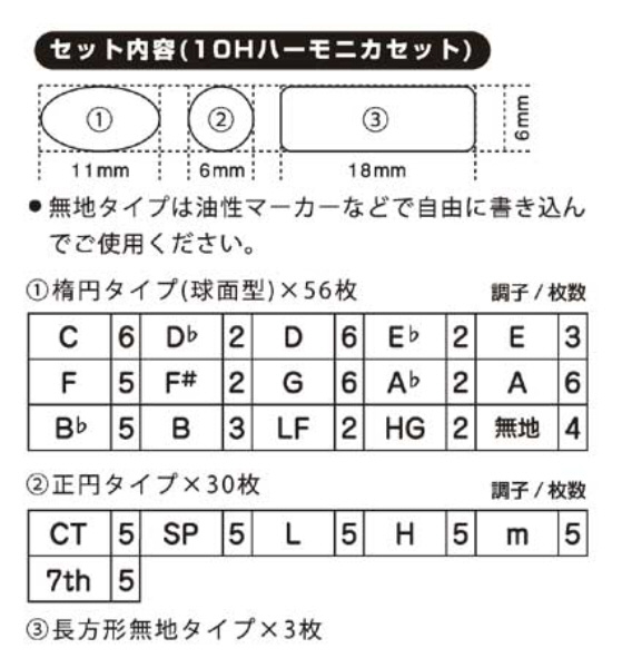 ハーモニカの本体やカバーなど好きなところに貼って使える調子シールです。