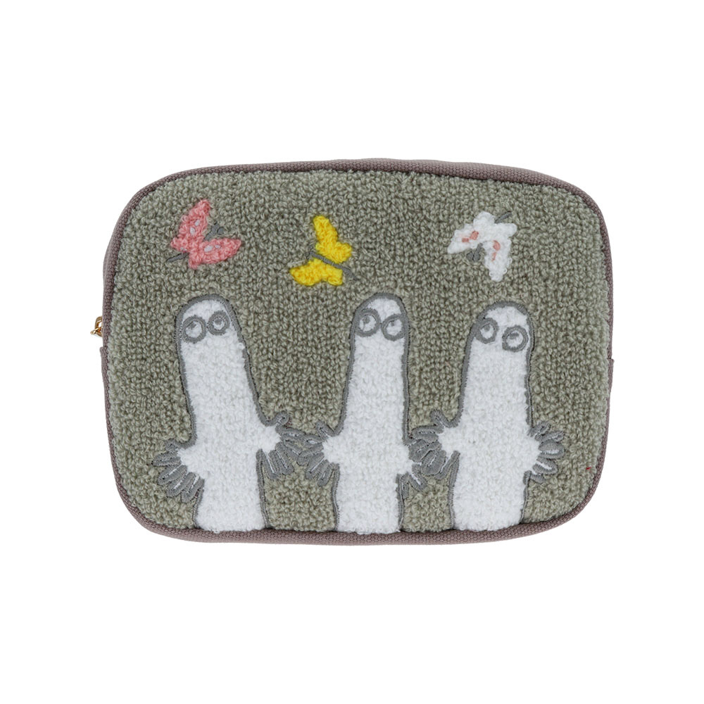 ふわふわのサガラ刺繍がかわいいポーチ、「サガラ刺繍ポーチ」。柄は、MOOMIN25SU。デザインは、ニョロニョロ。