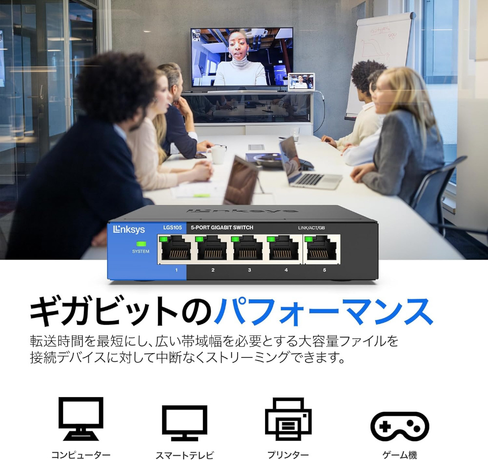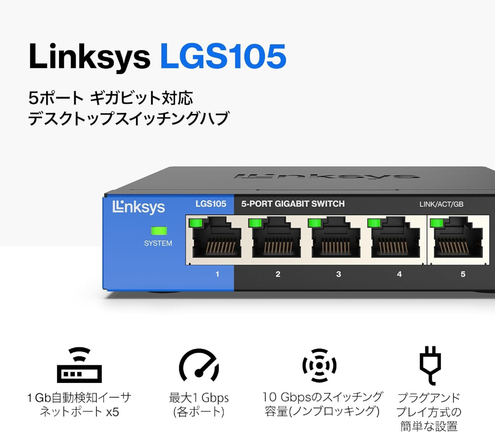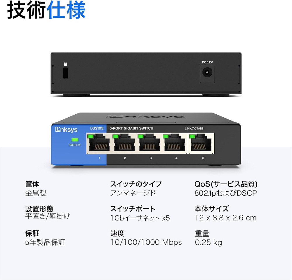 | 商品名 | スイッチングハブ [5ポート /1Giga対応 /ACアダプタ] LGS105-JP |