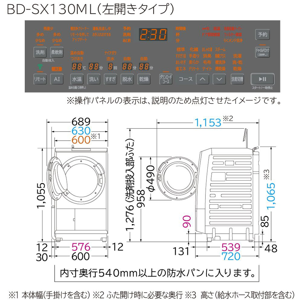 乾燥フィルターレスでお手入れがらく「らくメンテ」、高速風と大風量でシワを伸ばす「らくはや風アイロン」、高濃度と大流量で汚れをスッキリ「ナイアガラ洗浄」搭載。「[温水]ナイアガラ洗浄」搭載モデル。