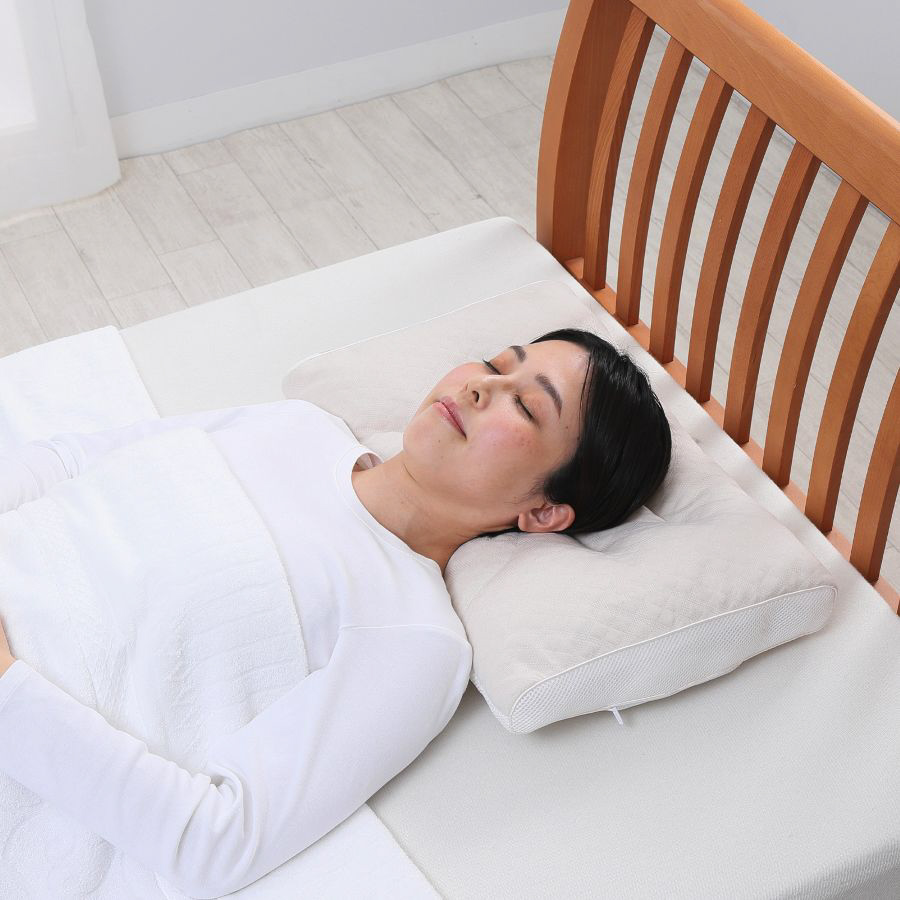 首肩フィットは時に仰向け寝で寝る方におすすめ、首をしっかり支えるネックサポート(首部独立)を採用し仰向け寝時の首・後頭部が安定します。高さ調節は首部と後頭部の2か所調節可能。