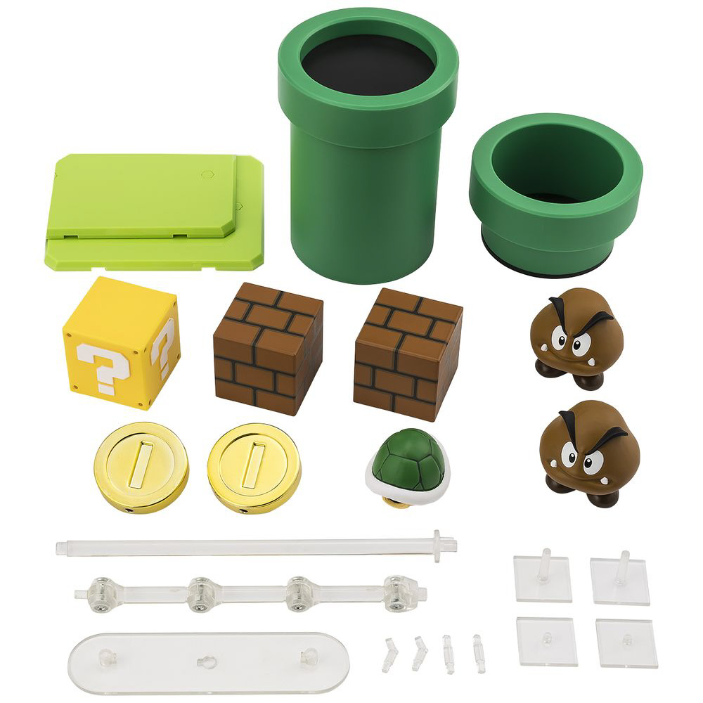 ミドリこうら、コインといったお馴染みのアイテムに加え、ハテナブロック、レンガブロック、土管といったフィールドアイテムも付属。