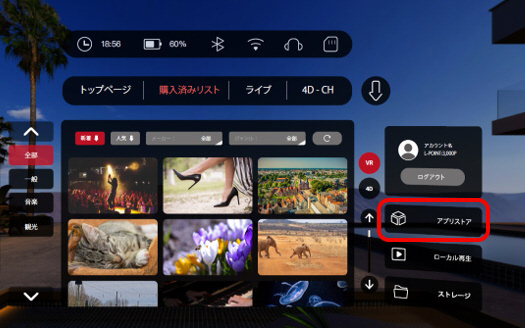 アプリストア「VIVEPORT」やVR動画配信サービス「VeeR VR」に対応。また、リアルタイムLIVE、動画(4D-VR/VR/360°/2D動画)配信サービス「4D-CH」のアプリもプリインストール済みなので、本製品購入後すぐに豊富なコンテンツをお楽しみいただけます*。