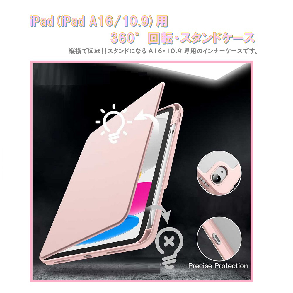 iPad10.9・iPad A16共用の360°回転スタンド・インナーケースです。
