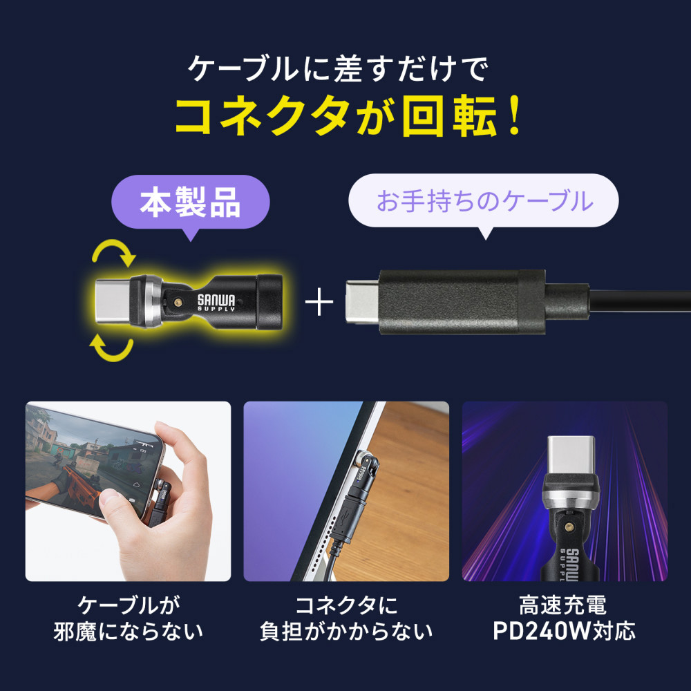 自由自在にクルクル回転するUSB2.0 Type-Cアダプタ。PD240W対応。
