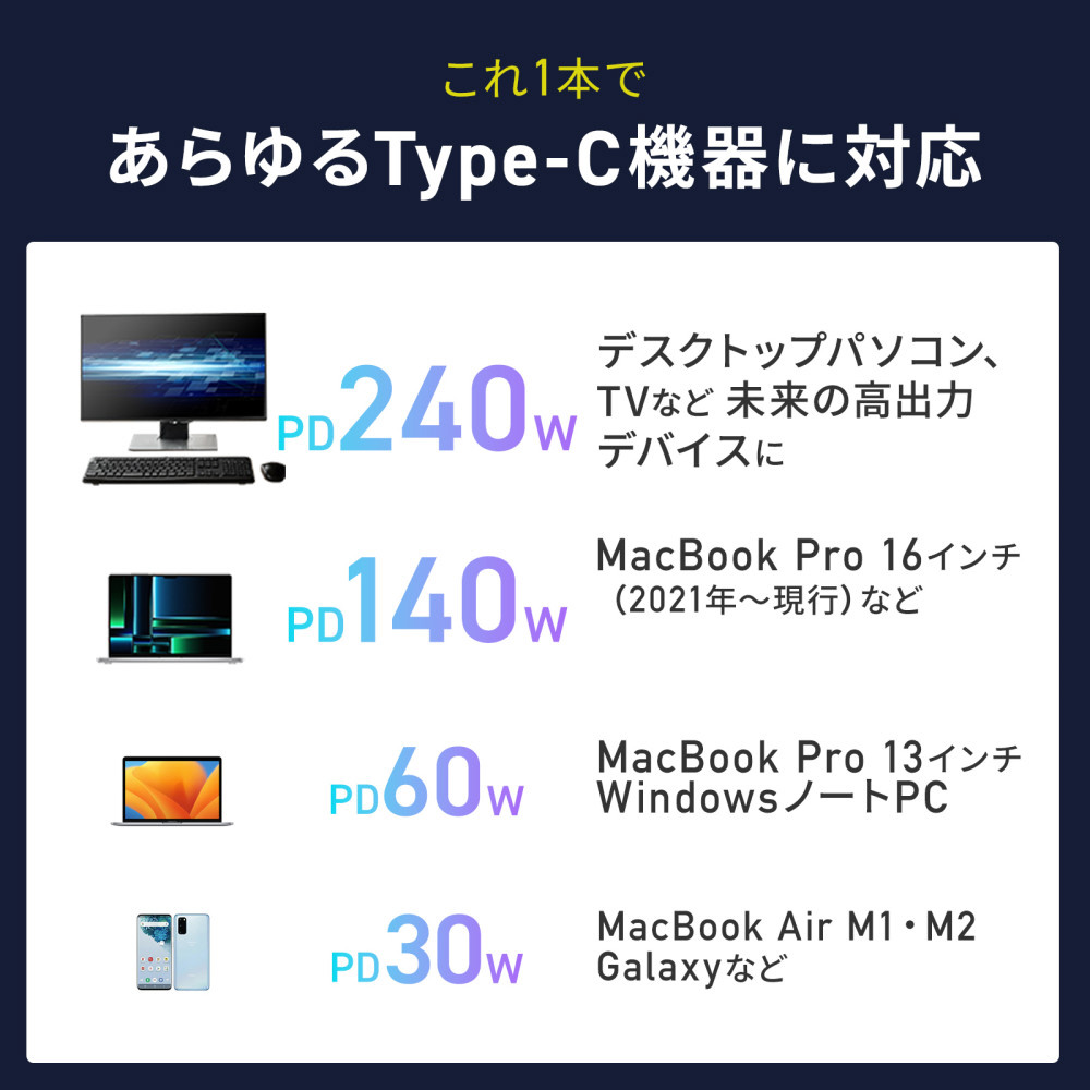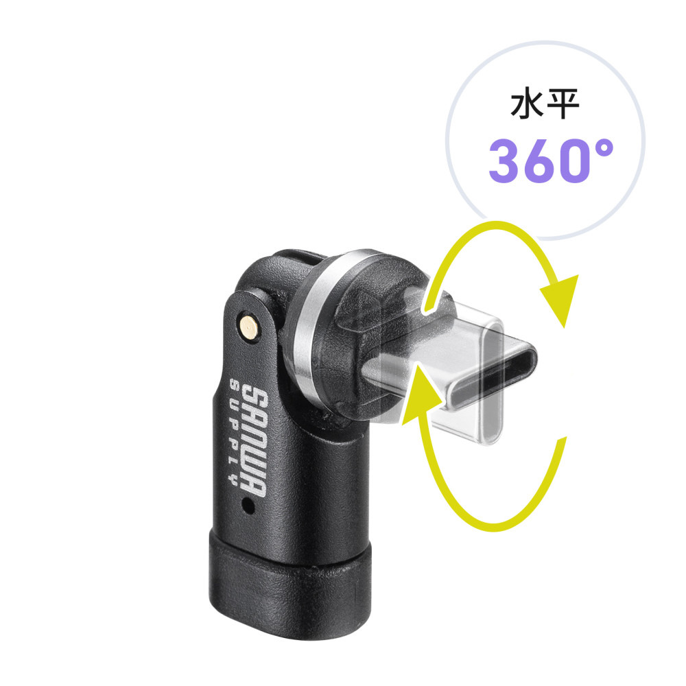 「USB2.0 Type-Cアダプタ(540度回転・240W・ブラック)」