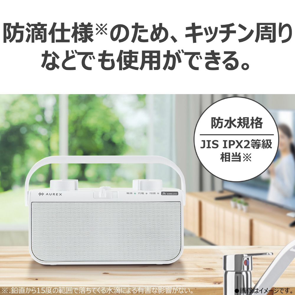 JIS IPX2*(防水に関する保護等級)相当の防水性能があるため、キッチン周りなどでもテレビの音声を楽しむことができます。