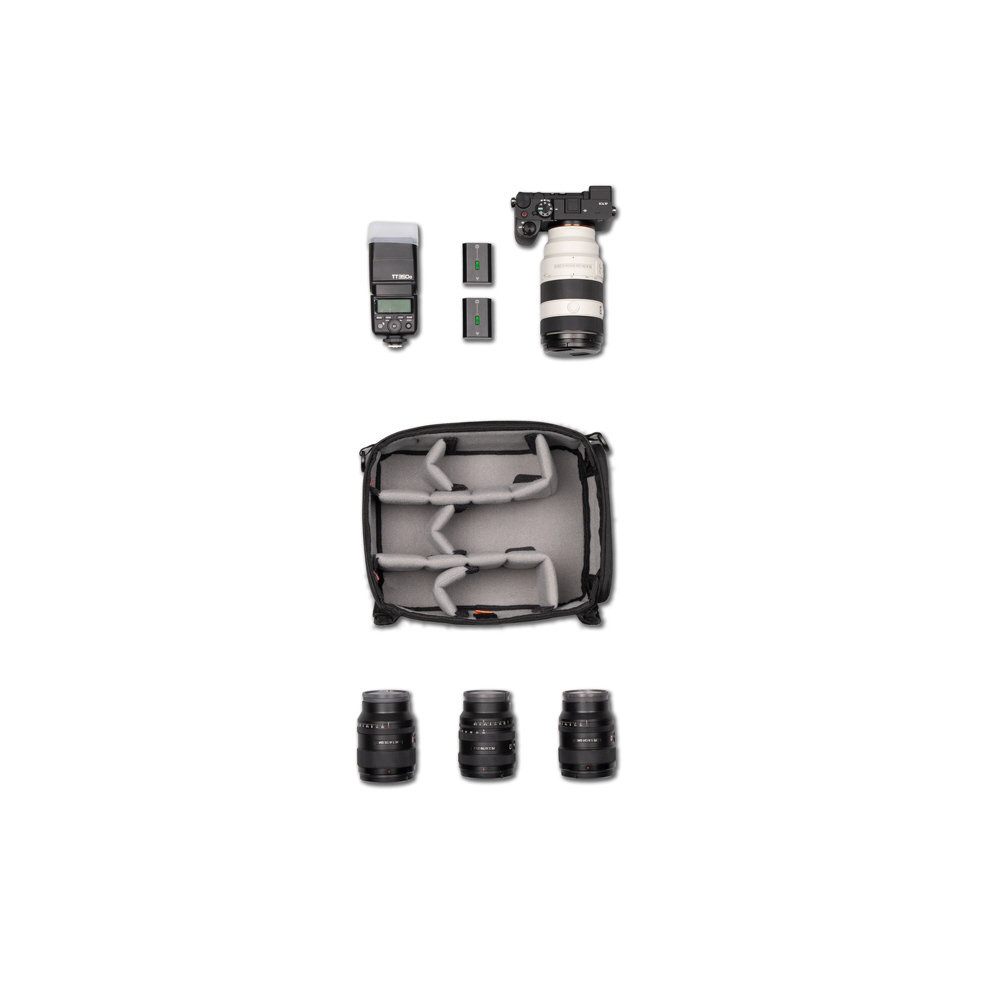 プロヴォークのメインコンパートメント下部に収納できるエッセンシャルカメラキューブと、プロヴォークのメインコンパートメント全体に収納できるプロカメラキューブの2種類。それぞれ3サイズの展開です。