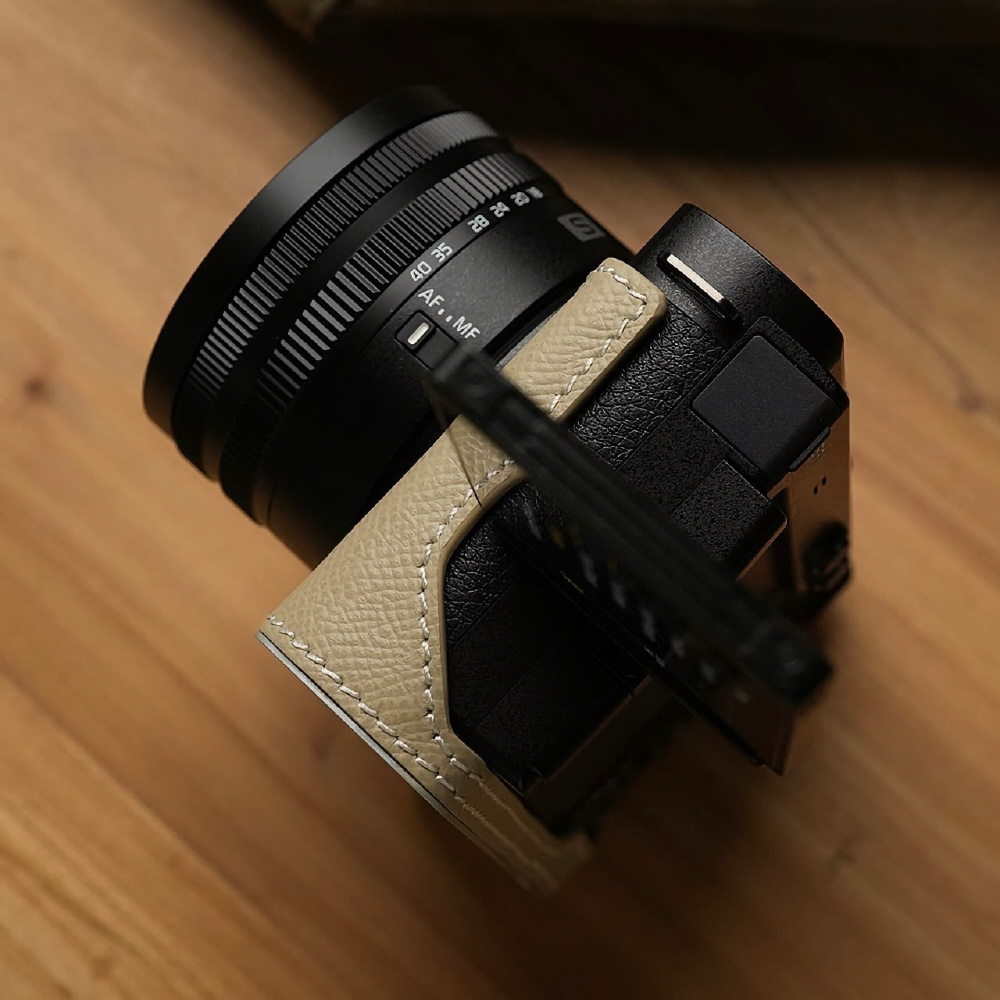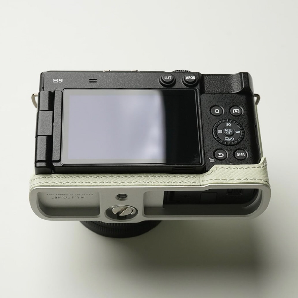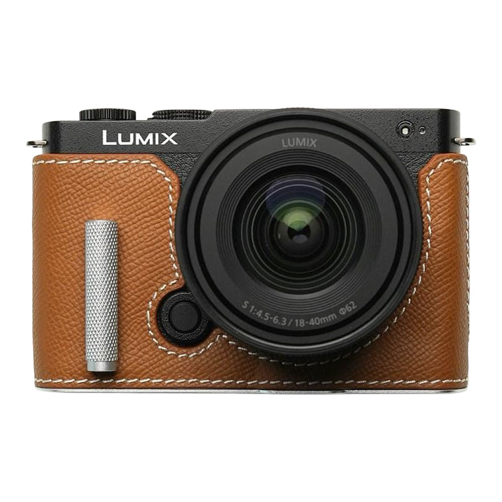 【受注生産】Panasonic LUMIX S9用 本革ケース クラシック メタルグリップ付 サドルタン/白ステッチ Mr.Stone