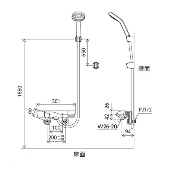 サーモスタット式シャワー 撥水 メッキワイドシャワー付 FTB300KWFHST