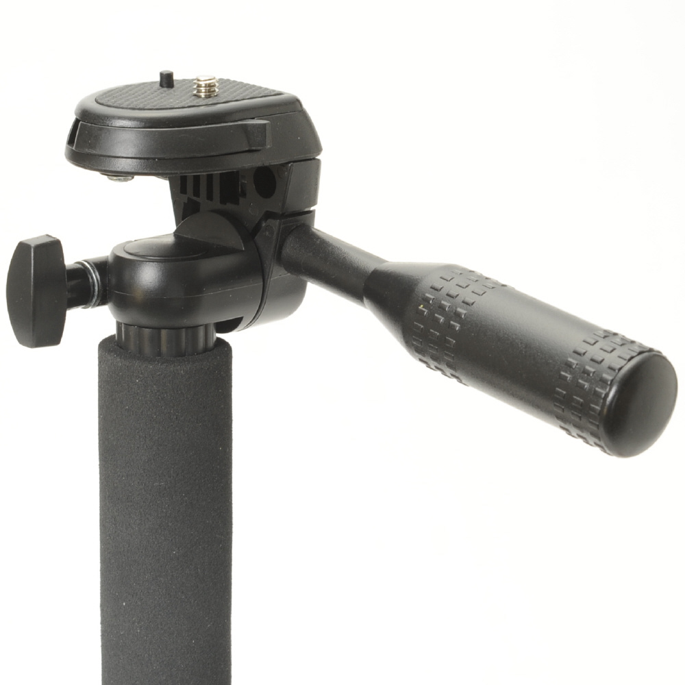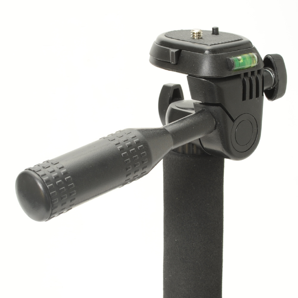 ビデオカメラの撮影に適した軽量一脚。クイックシュー付き雲台とパン棒で機動力がアップ。水準器も内臓。雲台のティルト機構を活かせば、スチルカメラでも縦位置撮影が容易です。