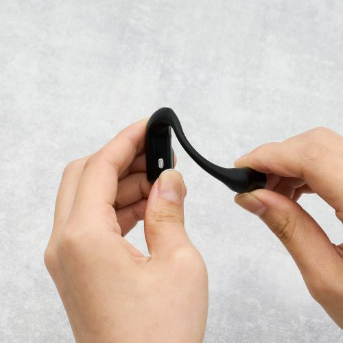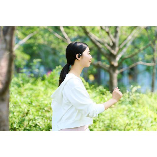耳の中にヘッドホンを入れないため、従来型のヘッドホン装着時の圧迫感や蒸れによる耳への負荷を感じにくい形状です。片側わずか約9.0gの設計で、長時間装着していても邪魔になりません。