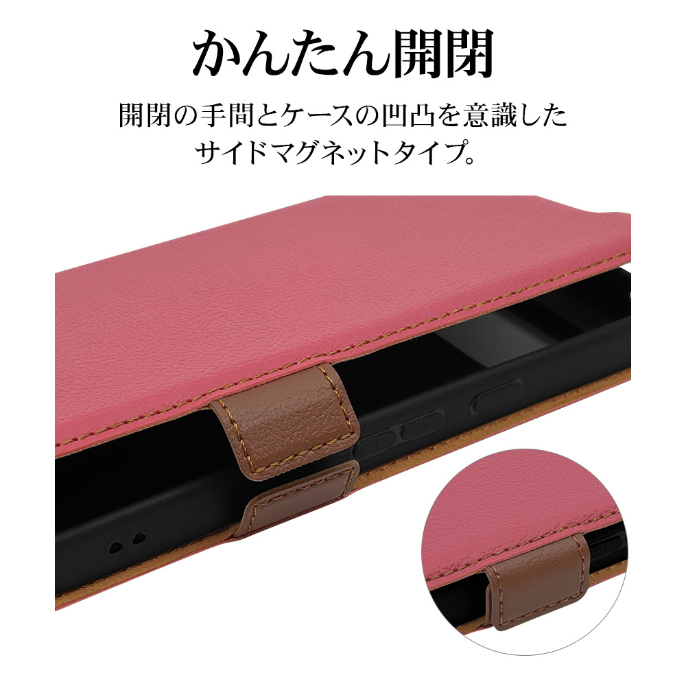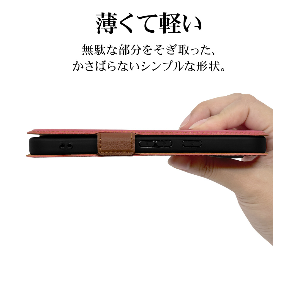 本製品は液晶画面側と背面側の両面を保護できる薄型で持ちやすい手帳型ケースです。