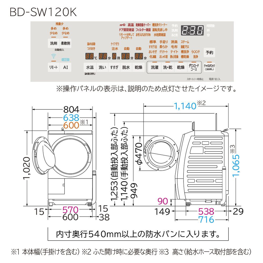 ドラム式洗濯機 ビッグドラム ホワイト BD-SW120KR-W [洗濯12.0kg /乾燥6.0kg /ヒーター乾燥(水冷・除湿タイプ) /右開き]【生産完了品】