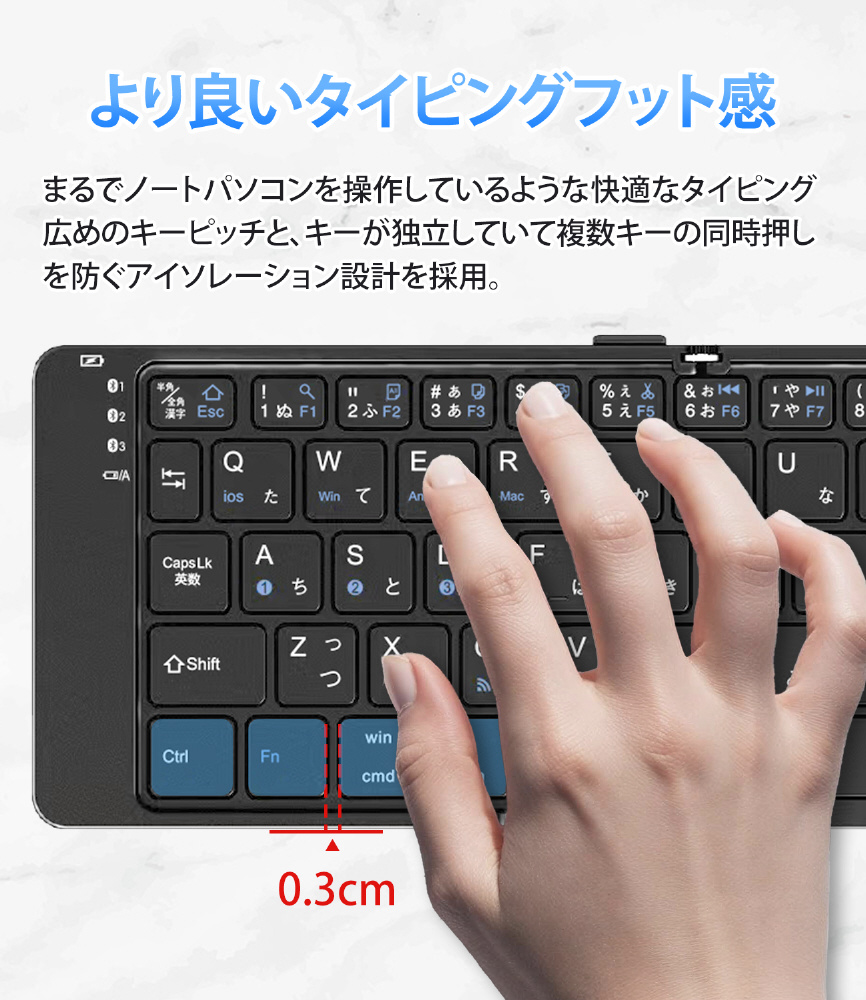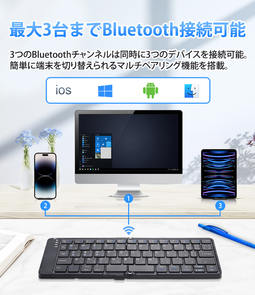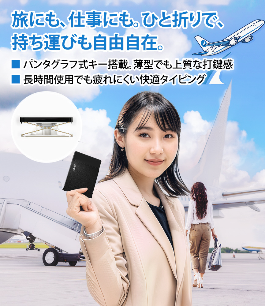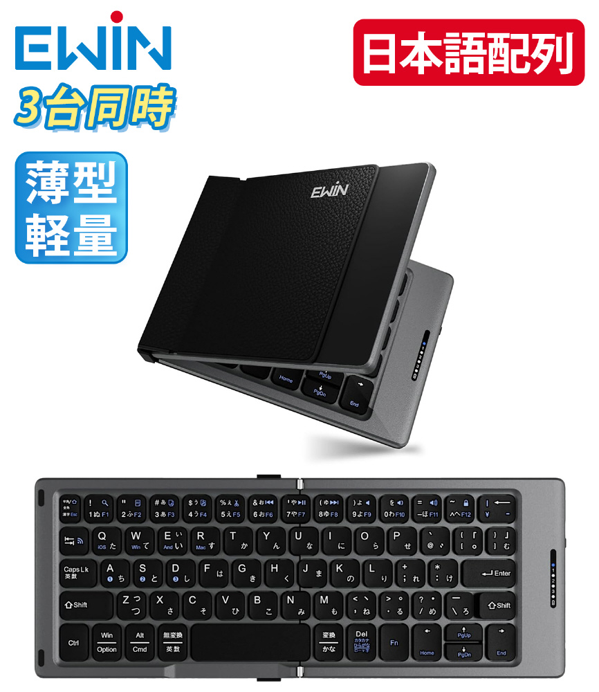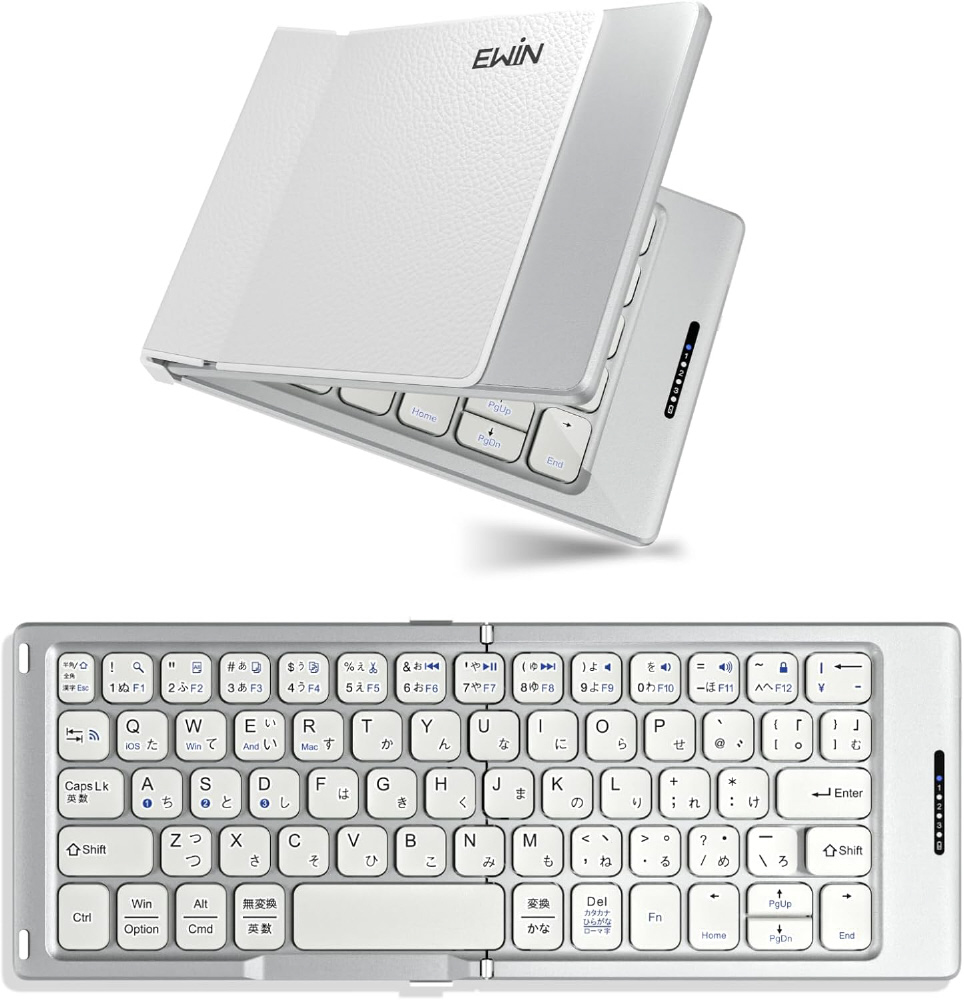 高級感あるレザー調デザインのEWIN二つ折りキーボードは、スタイリッシュで持ち運びやすい設計。Bluetooth接続でWindows・MacOS・iOS・Androidに対応し、外出先でも快適にタイピング可能。