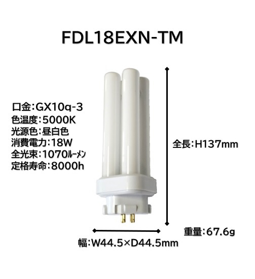 | 商品名 | コンパクト蛍光灯 18W形 昼白色タイプ 昼白色 FDL18EXN-TM [GX10q-3 /18形 /昼白色 /1本] |
