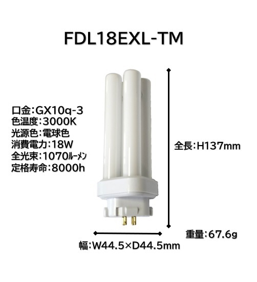 | 商品名 | コンパクト蛍光灯 18W形 電球色タイプ FDL18EXL-TM [GX10q-3 /電球色 /1本] |