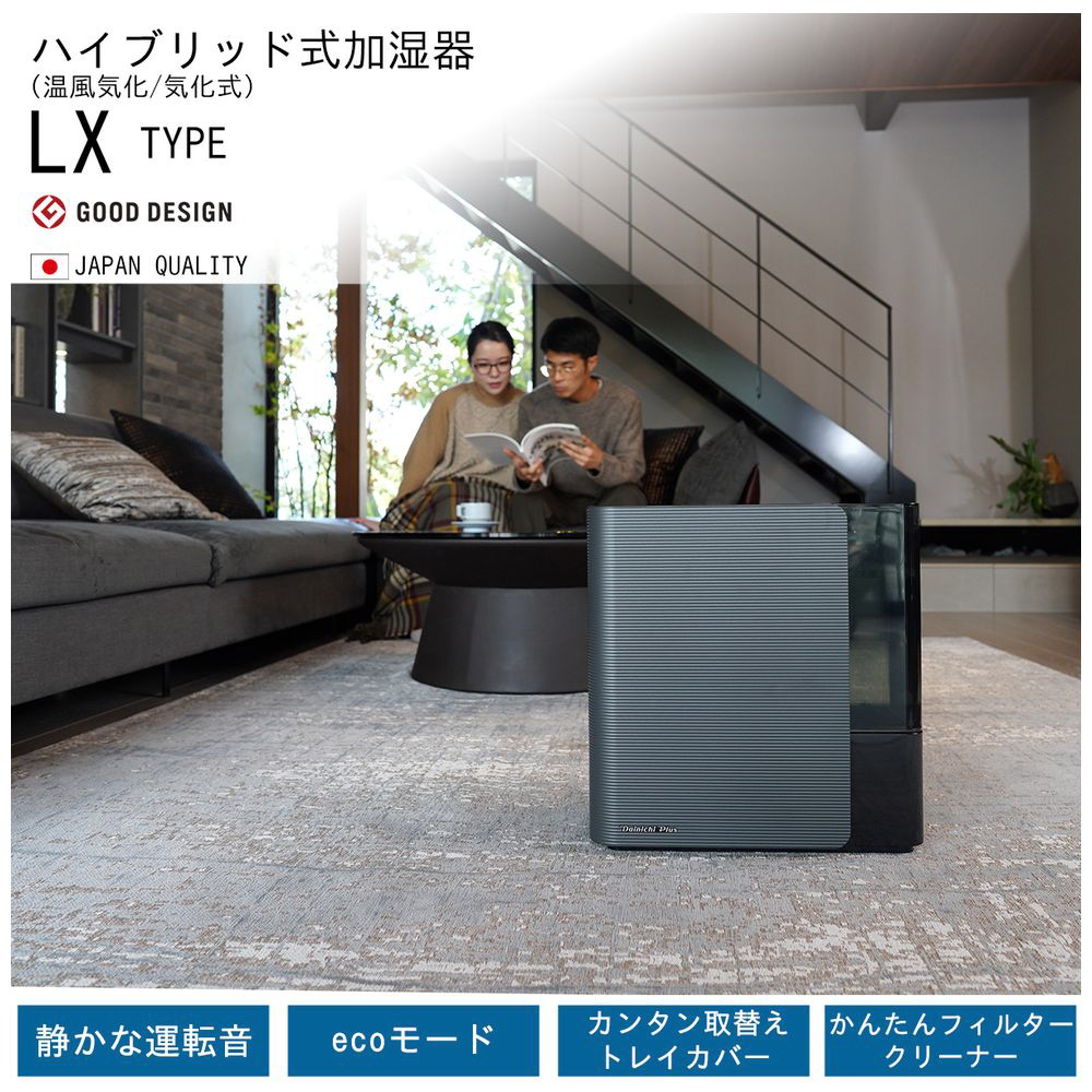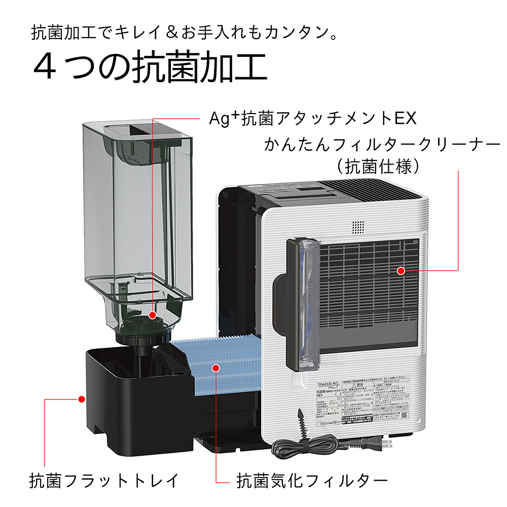 気化ハイブリッド式加湿器。お手入れ不要の取替えトレイカバー、外出先からも操作できるスマートリモコン対応。快適機能、パワフルな能力を兼ね揃えたダイニチのフラッグシップモデル。
