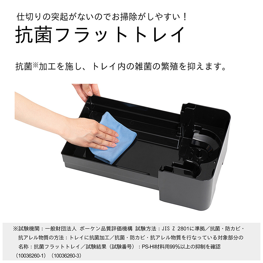 2.トレイ内の雑菌の繁殖を抑える抗菌フラットトレイ。