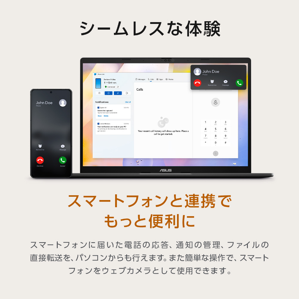 ASUS Vivobook S14ならバッテリーの心配はありません。70Whの大容量バッテリーは、スムーズなマルチタスクとエンターテインメントを一日中楽しめるスタミナがあります。朝から夜までバッテリーを気にすることなくどんなことでも取り組めます。
