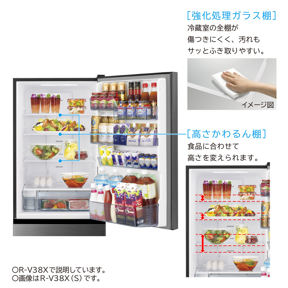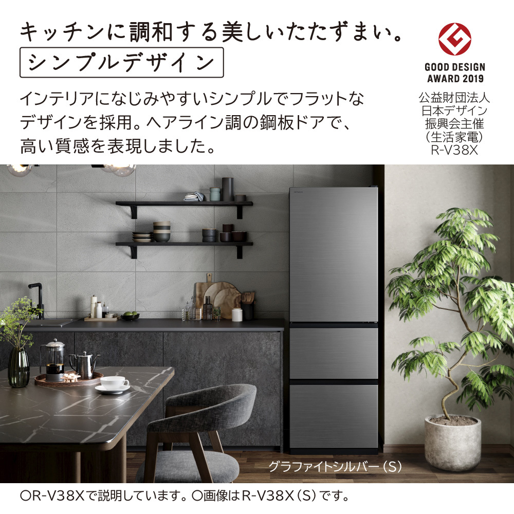 冷蔵庫 Vタイプ グラファイトシルバー R-V38X-S [幅60cm /375L /3ドア /右開きタイプ /2025年] 【基本設置料金セット】