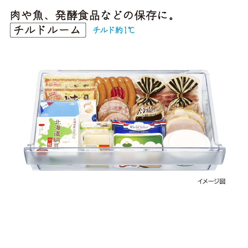「チルドルーム」は冷蔵室よりも低い約1℃の温度で保存でき、乳製品や生鮮食品の保存に適しています。
