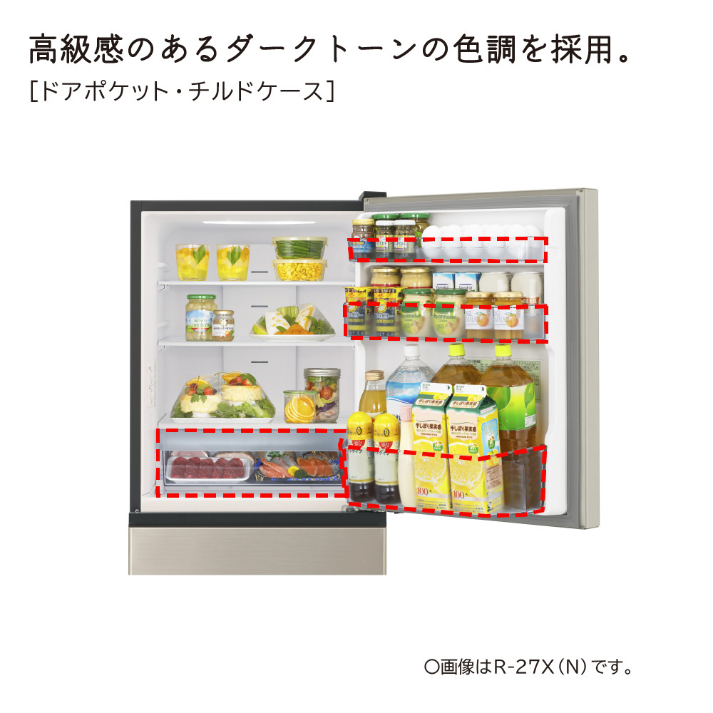 | 商品名 | 冷蔵庫 ライトゴールド R-27X-N [幅54cm /265L /3ドア /右開きタイプ /2025年] 【基本設置料金セット】 |