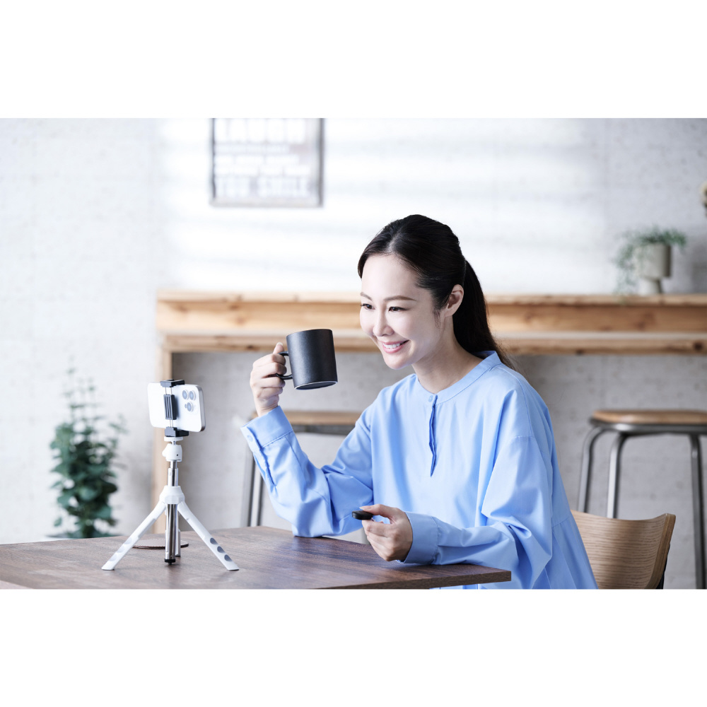 集合写真などの撮影におすすめ!Bluetooth(R)接続で離れた場所からスマホカメラのシャッターを切れる、ワイヤレスリモコンです。スマートフォンを自撮り棒や三脚に装着し、シャッターを切れば手ブレを抑えて撮影ができます。