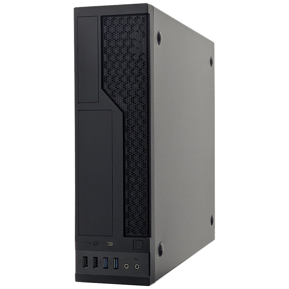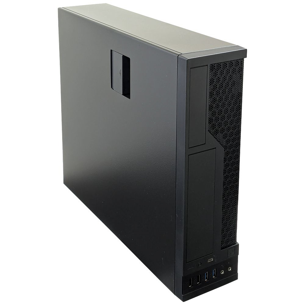 ケースは縦置きも横置きも可能。フロントポートの構成は、USB 3.2 Gen2x2 Type-C (20 Gbps)×1、USB 3.0×2、USB 2.0×2、HD オーディオとなります。ドライブベイやサイドパネルは工具無しでも取り外しができるよう設計されているので、メンテナンスも容易に行なえます。容量11.9Lのコンパクトサイズで、オフィスでの使用にも最適なスリムケースです。