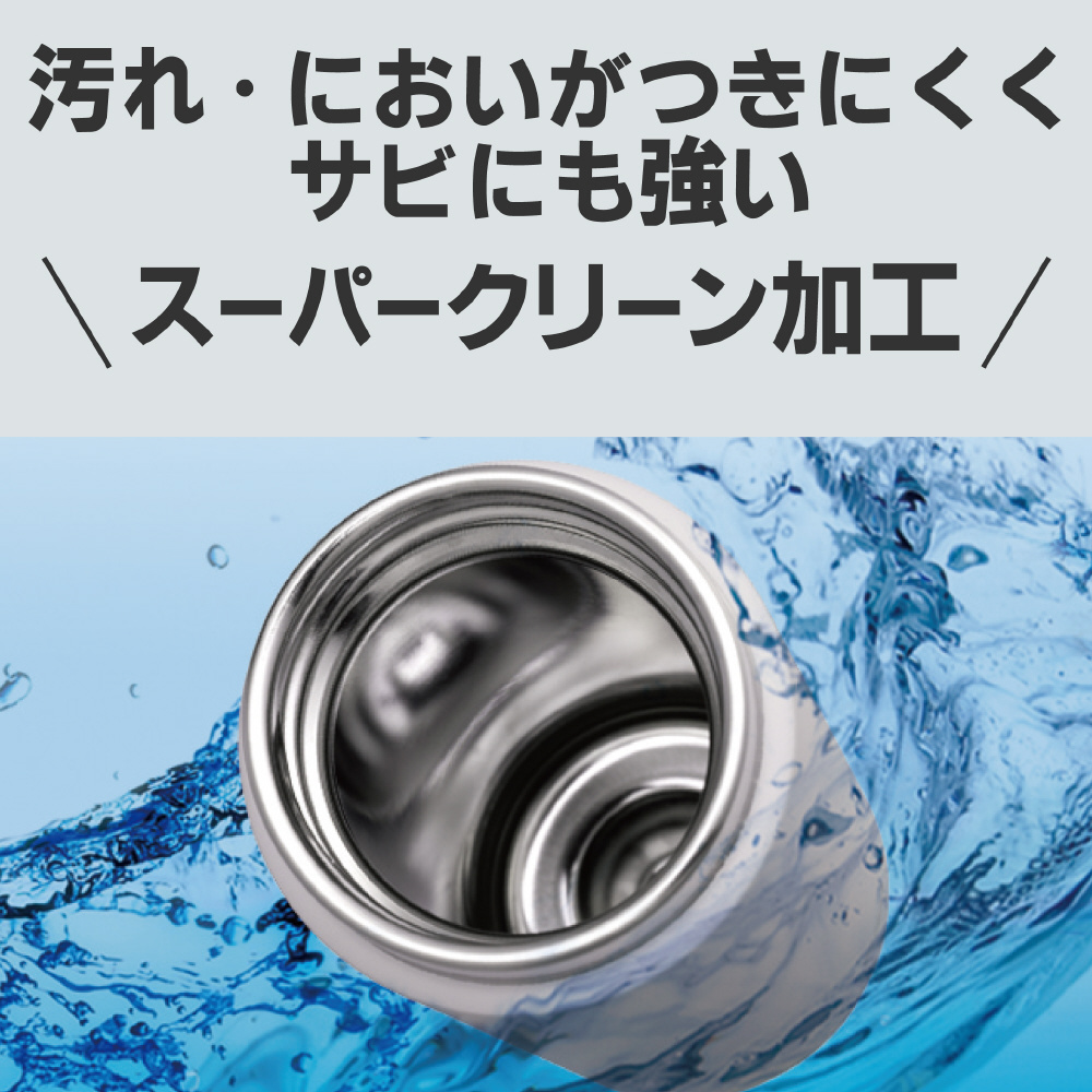 ステンレスの清潔さと飲み心地の良さを両立させた、なめらか飲み口。