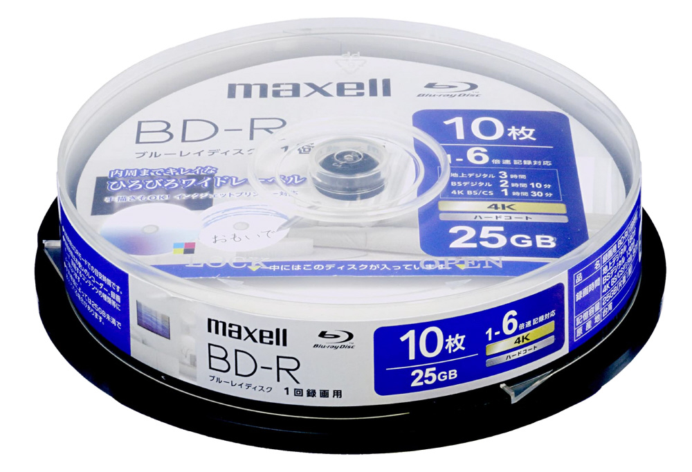 | 商品名 | 録画用ブルーレイディスク BD-R 10枚入り maxell BRV25WPH.10SP [10枚 /25GB /インクジェットプリンター対応] |