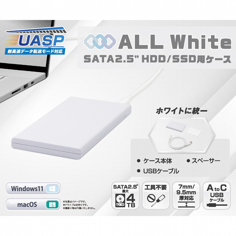AOK-25CASE-SLU3W HDD/SSDケース USB-A接続 (Mac/Windows11対応) ホワイト [2.5インチ対応 /SATA /1台]