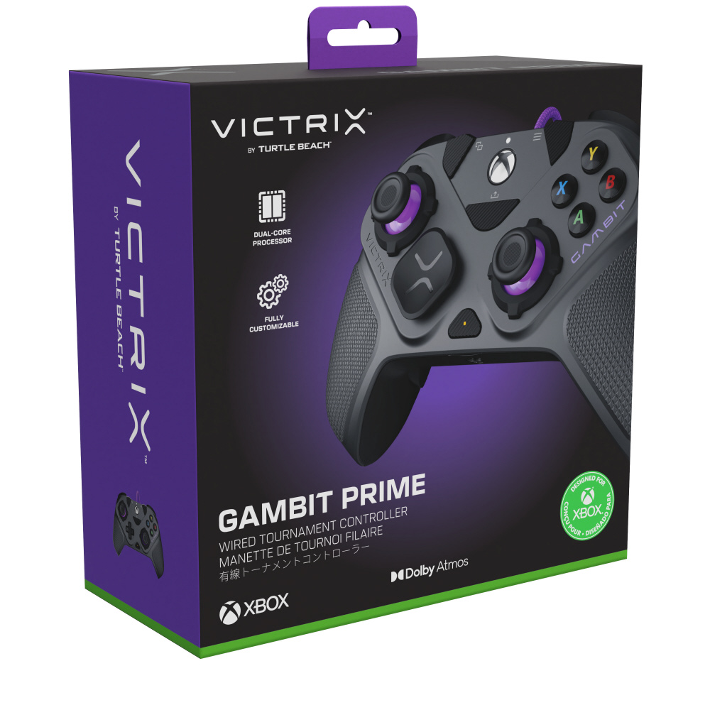 Victrix Gambit Primeは、Dual CoreテクノロジーとDolby Atmosオーディオに加え、XboxとPCでのゲームプレイを優位に進めるためのプロレベルのカスタマイズ性を備えた、最速のXbox公式ライセンス取得済みコントローラーです。