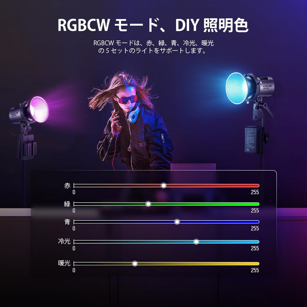 CCT/HSI/RGBCW/FXの4.つ照明モードを切替可能。RBGCW LEDビデオライト(赤/緑/青/冷白/暖白)独立調整。 0-3.6.0°色相、0-1.00%彩度をカスタマイズされたカラーを実現します。-5.0/+5.0GM補正で自然光再現精度が向上でき、雷雨・パトライトなど1.7.種類のプログラム済みの特殊効果でクリエイティブなビデオ撮影も可能です