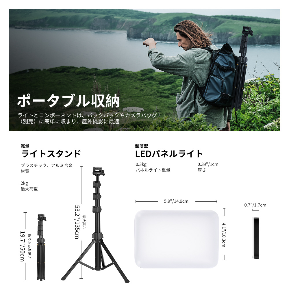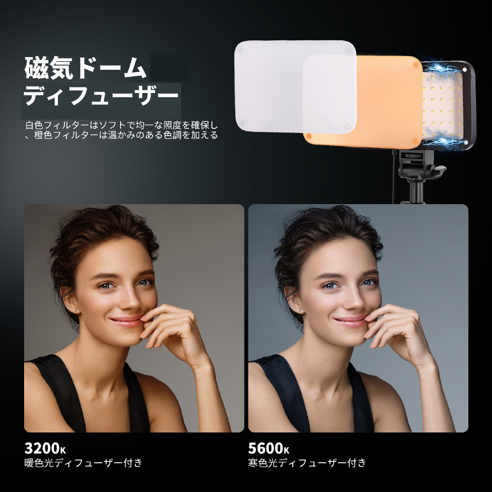 BP66 LED撮影ライトは、わずか約177gの軽さとコンパクトサイズが特長。持ち運びが容易で、撮影やストリーミングにも手軽に利用可能。ライブ配信、写真撮影、動画制作において、キーライトとして活躍します。