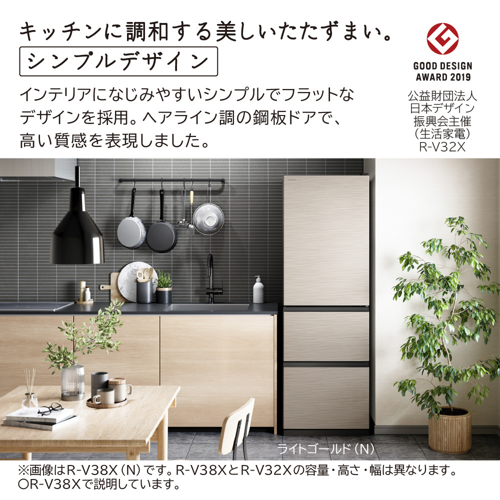 冷蔵庫 Vタイプ ライトゴールド R-V32XL-N [幅54cm /315L /3ドア /左開きタイプ /2025年] 【基本設置料金セット】