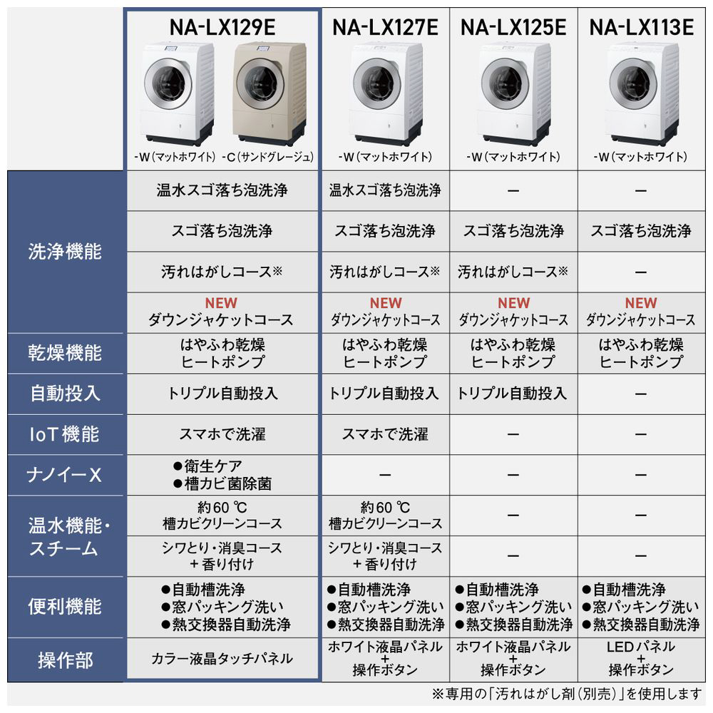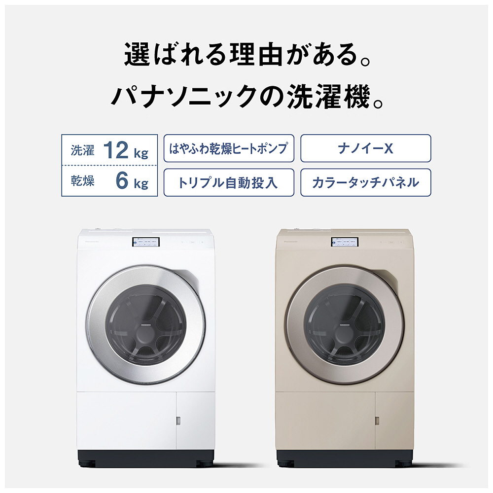 | 商品名 | ドラム式洗濯乾燥機 LXシリーズ マットホワイト NA-LX129ER-W [洗濯12.0kg /乾燥6.0kg /ヒートポンプ乾燥 /右開き] |