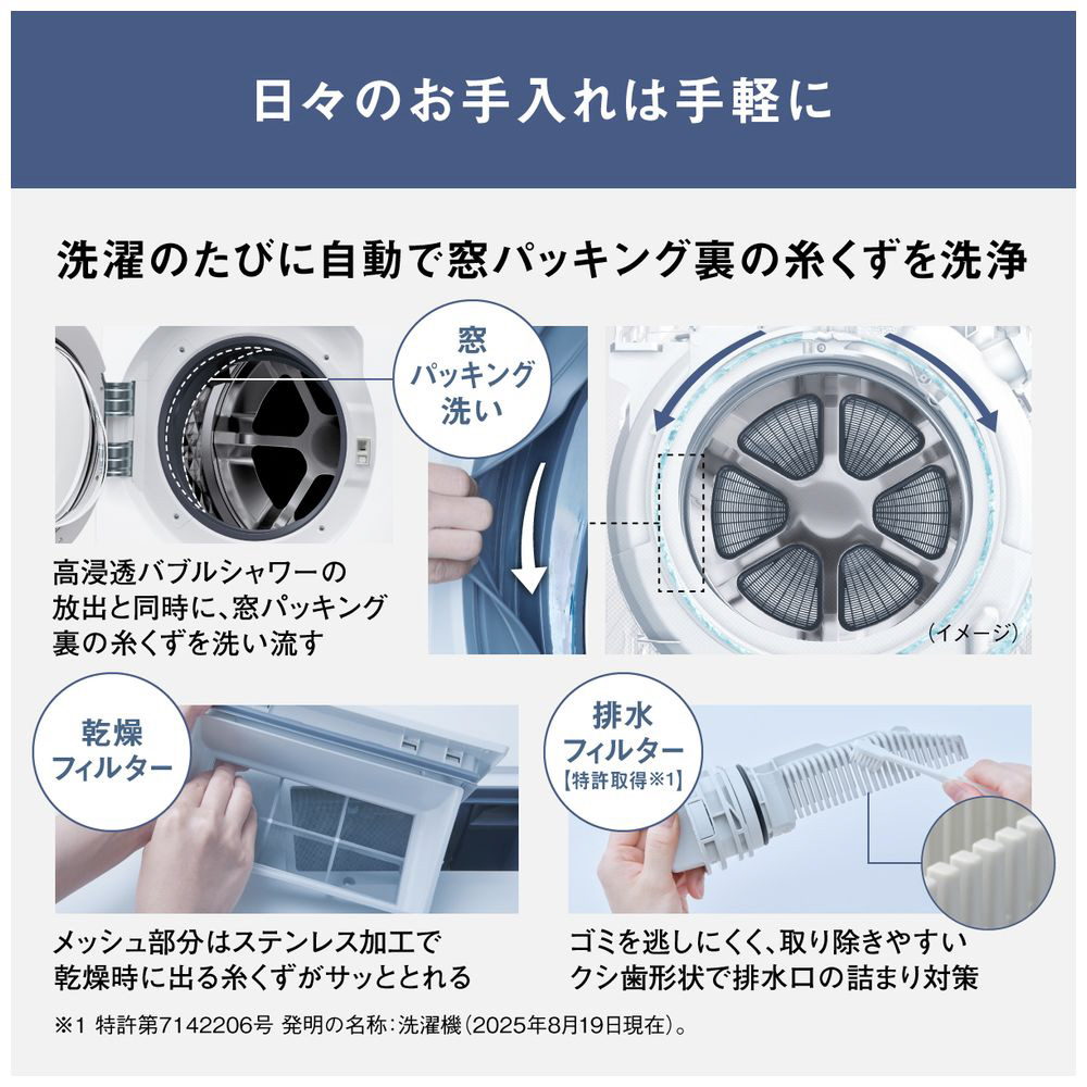 | コース | 洗濯21コース、乾燥8コース、洗濯〜乾燥15コース、スチーム1コース、ナノイー4コース |