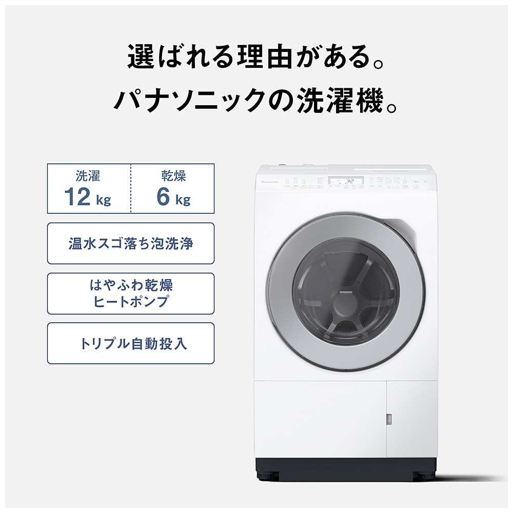 | 商品名 | ドラム式洗濯乾燥機 LXシリーズ マットホワイト NA-LX127EL-W [洗濯12.0kg /乾燥6.0kg /ヒートポンプ乾燥 /左開き] |