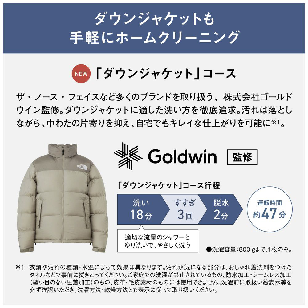 ・NEW これからは、ダウンジャケットもホームクリーニング★: (株)ゴールドウイン監修の「ダウンジャケットコース」で、自宅でもキレイな仕上がりに※4。