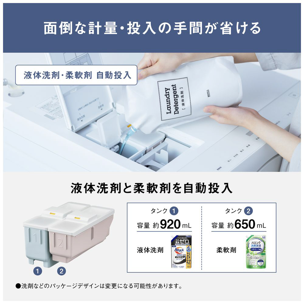 ■液体洗剤・柔軟剤は適量を自動で投入