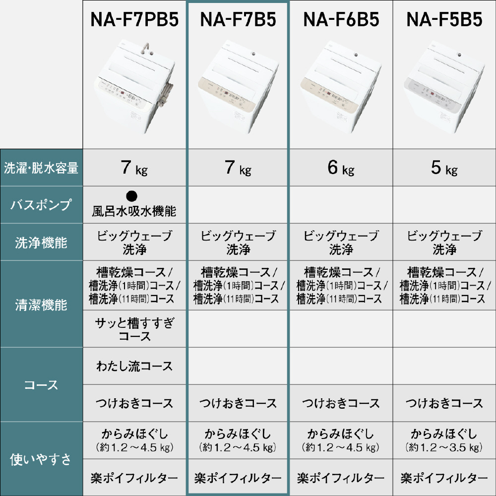| 商品名 | 全自動洗濯機 Fシリーズ ライトベージュ NA-F7B5-C [洗濯7.0kg /乾燥機能無 /上開き] |