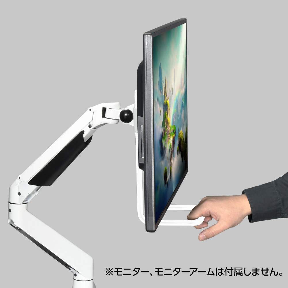※本製品は自立式スタンドではありません。既存のモニターアームに取り付けて、モニターの高さや角度を変える動作を補助するものです。