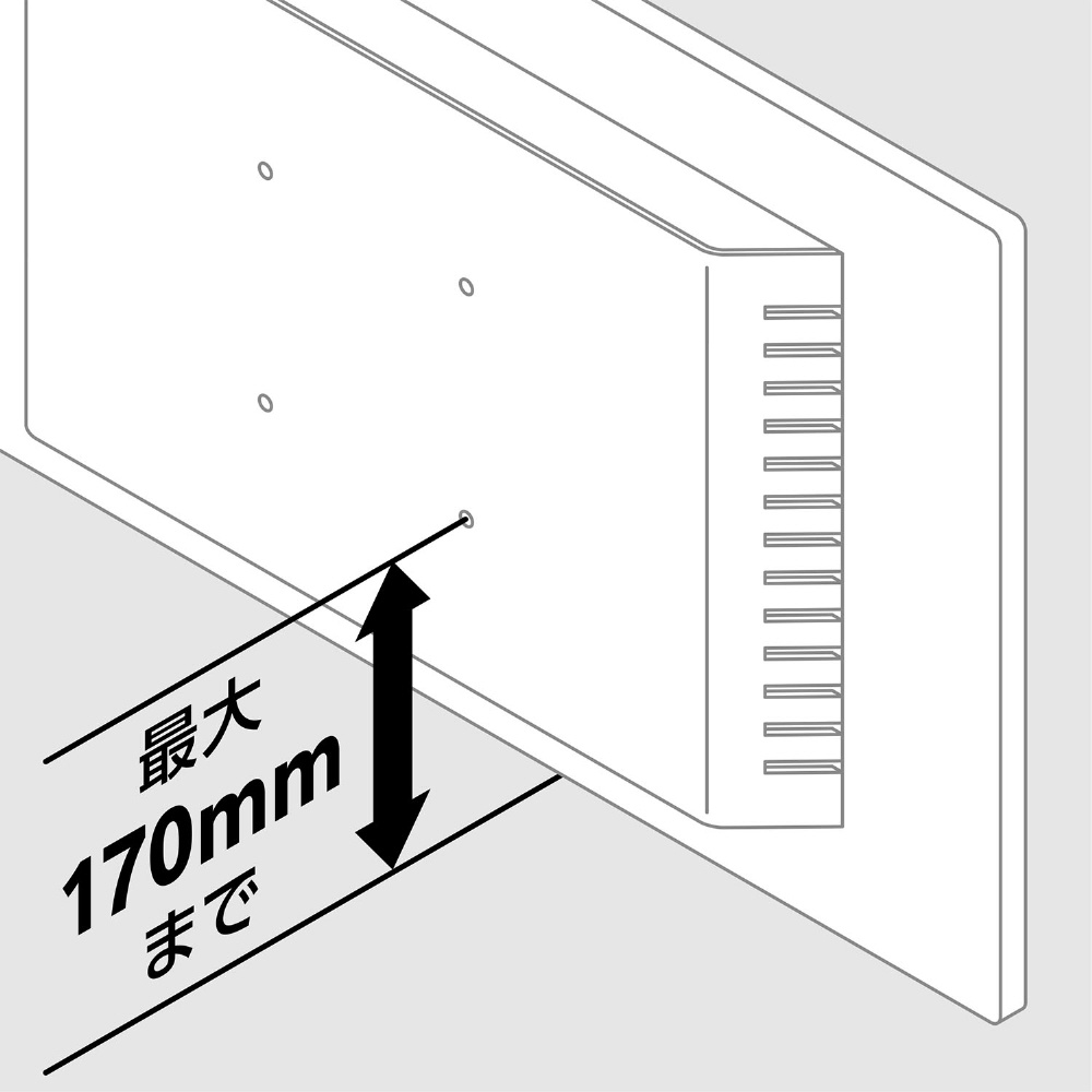 | 仕様1 | [対応モニターサイズ(目安)] 最大27インチ程度(縦横比16:9相当) ※VESA固定穴がM4のタイプに限ります。M5、M6などのネジ穴のモニターには取り付けできませんのでご注意ください。 ※下側VESA穴の中心からモニター下端までの長さが170mm以内のモニター。 ※モニターのコネクタ接続位置やケーブル類がハンドルと干渉する場合、取り付けできないことがあります。 [対応VESA規格] VESA100×100mm |