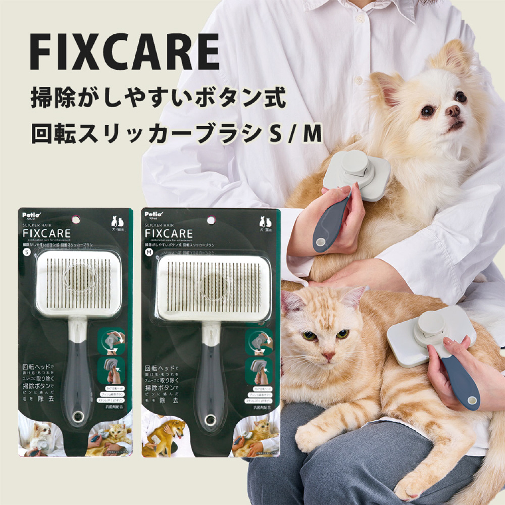 犬猫用 FIXCARE 掃除がしやすいボタン式 回転スリッカーブラシ S