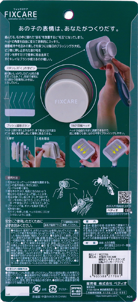 | 商品名 | 犬猫用 FIXCARE 掃除がしやすいボタン式 回転スリッカーブラシ S |